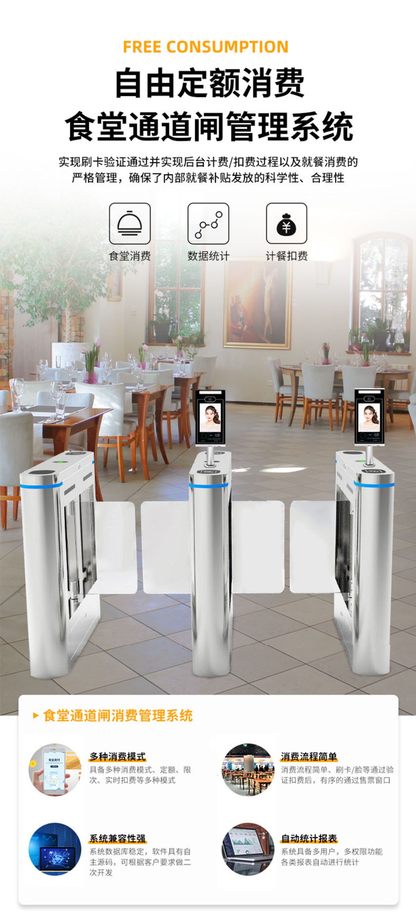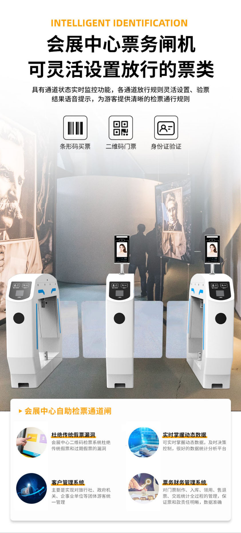 人行通道閘將機(jī)械、電子、微處理器控制及各種身份識(shí)別技術(shù)有機(jī)地融為一體,方便兼容CPU卡、IC卡、ID卡、條碼卡、指紋、人臉等讀卡識(shí)別設(shè)備的使用,通過選配DA身份識(shí)別系統(tǒng)設(shè)備和采用性能可靠的安全保護(hù)裝置、報(bào)警裝置、方向指示等,協(xié)調(diào)實(shí)現(xiàn)對(duì)通道智能化控制與管理等。